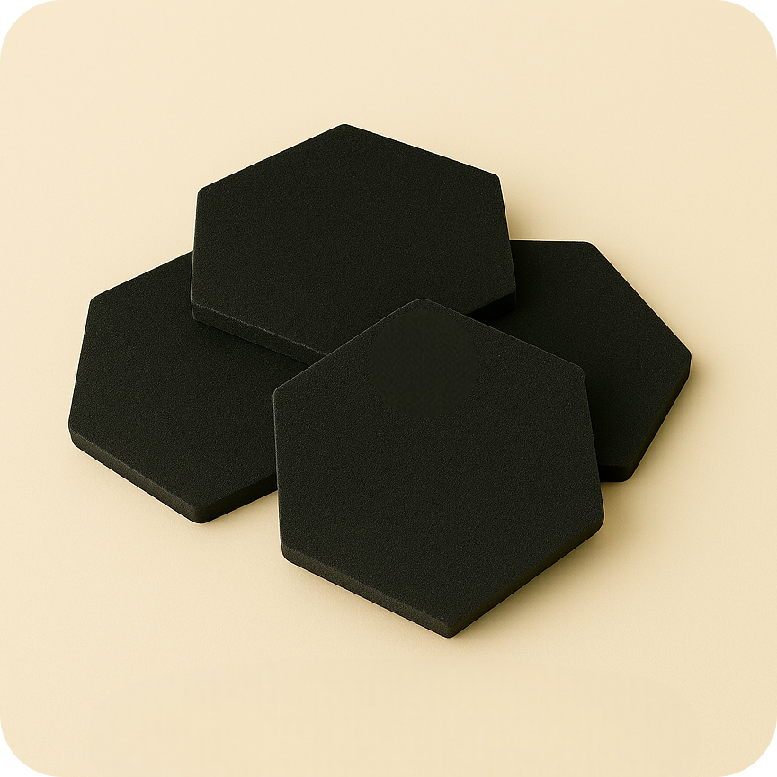 Stylové a odolné podložky ze spružného TPU v čistém šestihranném tvaru.